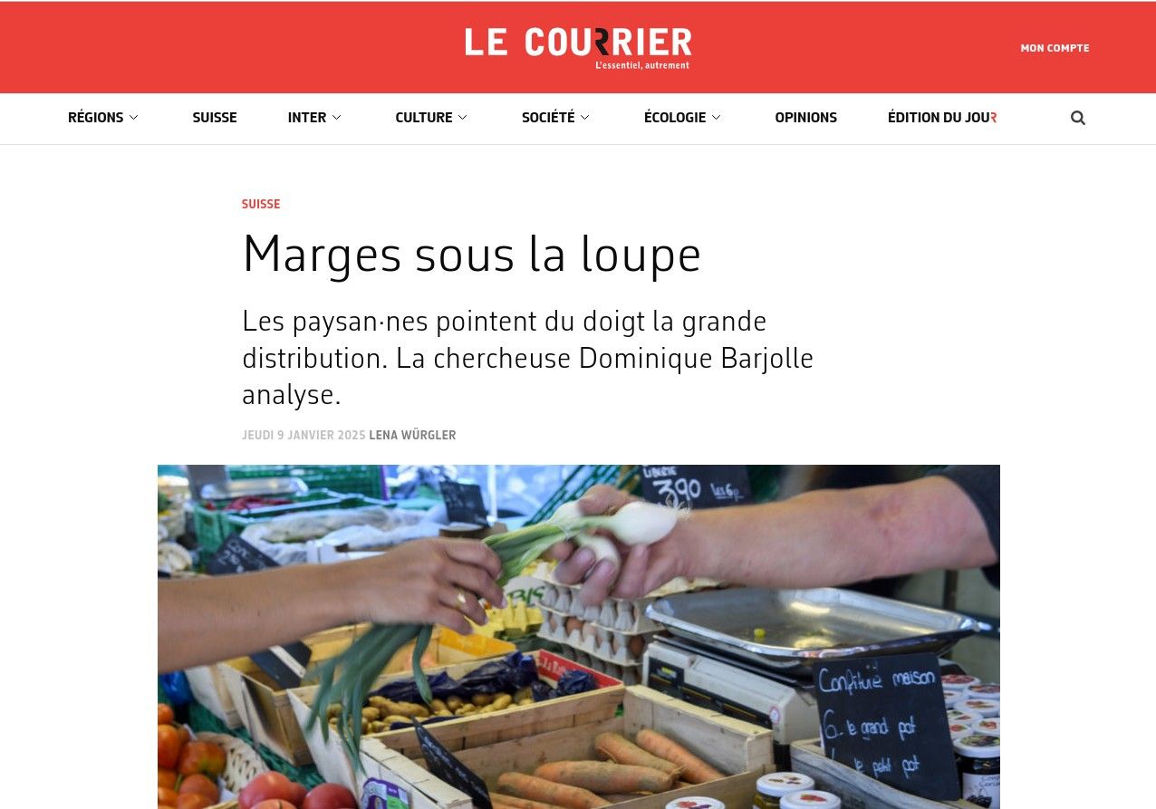 Un article du Courrier évoque le problème des marges dans l'agriculture