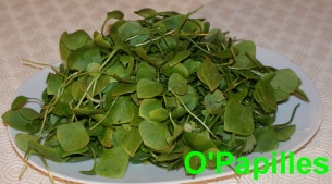 Petites feuilles vertes et grasses terminant un long pétiole et formant une rosette. Se cultive généralement en hiver. |